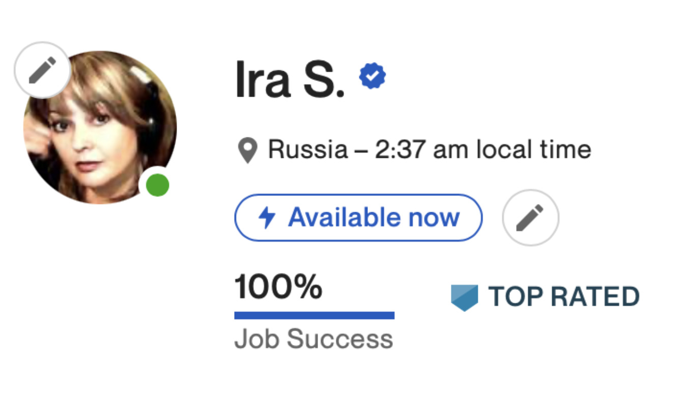 Все представленные на сайте работы созданы специалистом международного класса, имеющим статус топ-фрилансера (TOP RATED) на международной бирже Upwork со 100% успехом выполнения заказов.